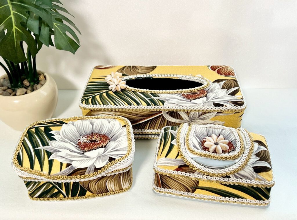 ハワイアンファブリックで仕立てたカバードクロスは見慣れた日用品を“特別なもの”へと変えてくれます